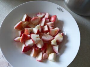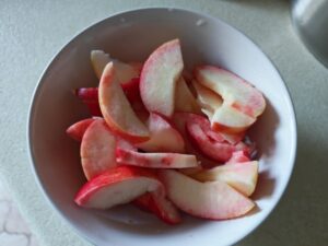 … then chop the remaining 2 apples into quarters and slice each quarter up.